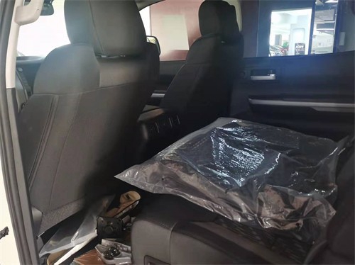21款全新丰田坦途TRD版皮卡车内乘坐、后排座椅宽大,足以满足身高195cm的贵宾,第二排座椅可以完全折叠收起,为乘客提供更宽敞的腿部空间,已经达到了中大型车的水平,完全可以满足舒适乘坐的需求,部分特殊的装载给您的路途更添信心。