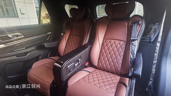 皮质方面因为是航空座椅,皮料选用的就是飞机头等舱上的同款座椅皮料,高档环保,通风透气、手感细腻,而且用久了也不会皱,也非常好打理,比探险者原车用的皮料还要好。