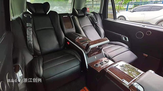 今天介绍的是揽胜加长车型,五座版揽胜升级四座版,后排从原来的三人连排座变成两人座,这样做能利用的后排空间一点也不比原来的小,反而用起来会更大,因为五座版的车型后排不能做太大幅度的调节,而升级后比原来多了很多调节功能和贴心的小功能,四座版本为无损伤升级,可随时还原回五座,这是一个很方便很灵活的升级改动。