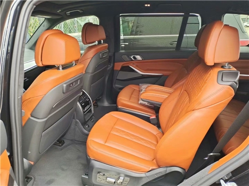 全新宝马X7的内饰设计更是让我们眼前一亮。全新的家族式内饰设计氛围的加入让这款旗舰车型既有豪华气质又突出了科技感。略微偏向驾驶员的中控台诠释了以驾驶员为中心的设计原则。全液晶仪表盘以及12.3英寸的中控大屏均提升了内饰的科技感。大量皮质包裹以及金属材质、水晶档杆、钢琴漆的加持都让内饰的豪华得到了极致体现。内饰用料以及制造工艺都很难让人挑出什么毛病。