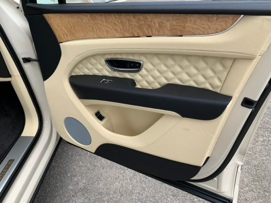 2021款宾利添越木兰花白/白 含税,配置:五座 22寸喷漆轮 金属漆 前排座椅舒适包 光蜡木内饰 加热双色隐藏方向盘 前后厚绒毛地毯衬垫