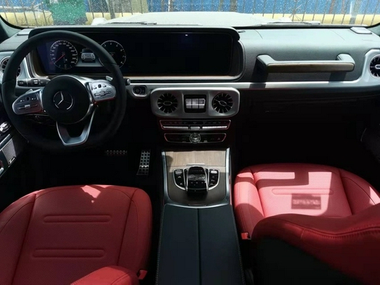 内饰是此次奔驰G级 (配置|询价)换代的最大最大亮点之一,给人耳目一新的感觉,双12.3英寸液晶通体屏幕外加与奔驰E COUPE相同的空调出风口设计。沿用多年的四辐式方向盘也改为三辐式设计,三点以及九点处的多功能按键也与S级 (配置|询价)车型相同,两侧黑色触控按键可以控制仪表盘信息,其中行车电脑和右侧模拟仪表都可以进行切换,可显示油耗、续航里程、车辆状态等信息。