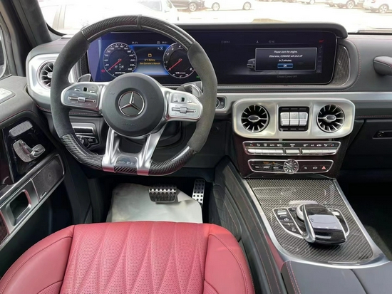 2021款奔驰G63档次、质感和科技配置都明显提升全新奔驰G级 (配置|询价)内饰相比老款有了明显的提升,采用了奔驰的双屏幕式设计,全液晶仪表盘和中控台屏幕都达到12.3英寸。豪华精致的真皮包覆提供了足够的舒适性和支撑性,通风和加热功能让乘客免受高温和寒冷的煎熬。中控台多处均采用碳纤维材料覆盖,带彩色TFT显示屏的AMG仪表盘、AMG主菜单和单独的挡位显示器以及采用白色照明的AMG门槛。名贵的选材及精湛的内装令人拍案叫绝。