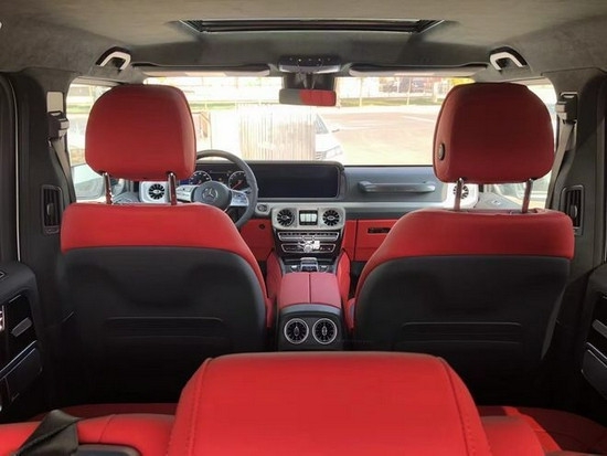 21款奔驰G63内饰方面其实才全新一代G级最大的变化。新车换上了奔驰最新家族式的内饰设计,这无疑让G级拥有了旗舰机应有的豪华感,不过经典的副驾驶席扶手和三把锁的开关键依旧延续了经典设计,并设置在中控台最显眼的位置。其中双12.3英寸高清屏,虚拟仪表盘与中控液晶屏融为一体,视觉上形成一个宽屏驾驶舱,中部的涡扇式空调出风口也颇具设计感,还大量采用了皮革的包覆。另外,新一代G级还对驾乘空间也进行了优化。