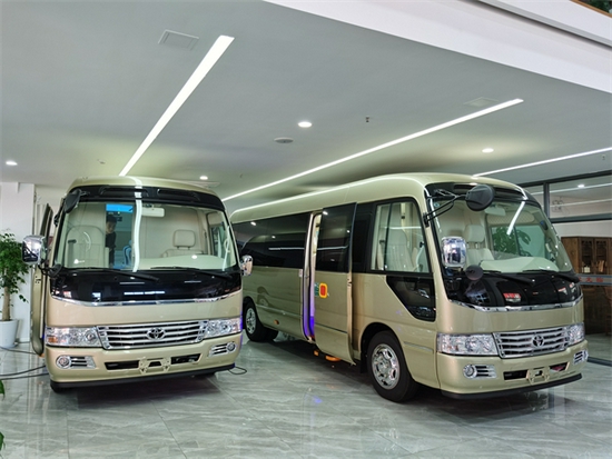 丰 田 考斯特经过内装改沙发,底盘加固后就不一样了, 外形低调,车内空间宽敞,视野开阔,油耗表现也比较经济百公里14升、18个,在政府公务车里很受欢迎。。我们有多年为客户服务的成功经验,洞察高端商务车市场多样化需求,从实际用途出发,以高级车,豪华车为基础。为您提供最合适您的最佳方案,通过加装不同特装车型套装配置,为您带来短程巴士,商务移动车,超VIP版和超尊贵版多款特装车型。