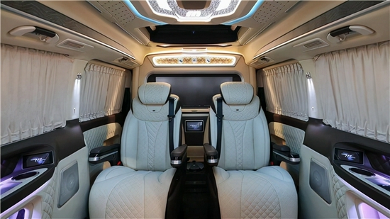 创概念设计复古双色VIP专属定制内饰,没有艳色的视觉冲击,也没有素色的平淡如水。用棕色与白色作为整体基调的奠定,门板异形花纹设计,凸显出年轻时尚的个性元素,衬托车身的时尚与高贵。中控台与座椅皆是真皮包裹,高贵气息席卷而来,当真是“美不胜收”。好了本款伟昊定制奔驰威霆高顶全隔断七座商务车小峰哥就同大家介绍到这里。阅览世间美好,带您跨越山河,品味人间烟火,给您一个移动的家 -我是小峰哥
