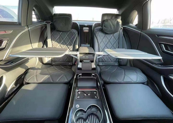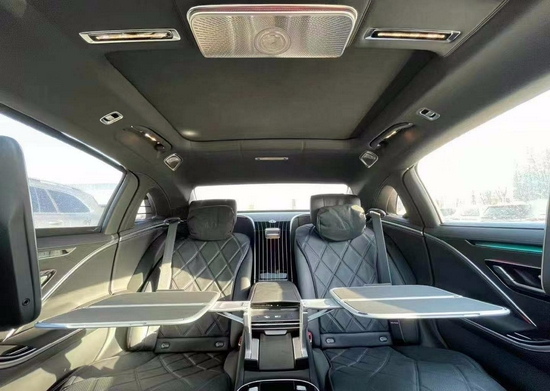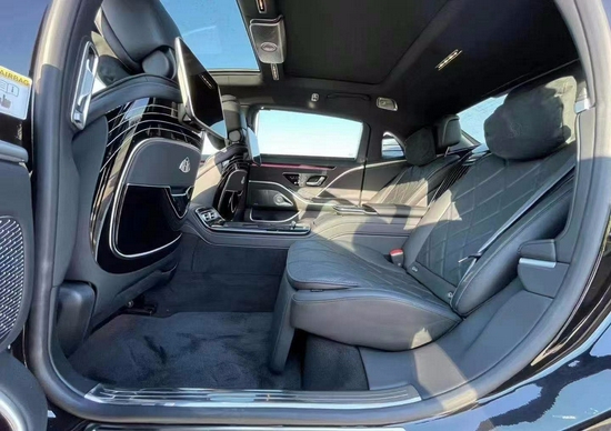 尺寸方面,迈巴赫S580 4MATIC长宽高为:5470/1921/1510mm,轴距为3396mm,定位大型车范畴。现场展车是四座版本,后排配备有中央扶手、多媒体大屏、腿托等设计。当副驾驶位通过按钮放倒以后,右后方的乘客伸直双腿都没有问题。