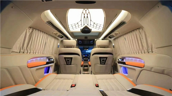 车内全部玫瑰金饰件镶嵌,电子设备一应俱全。细节上的安置极其人性化。设备的是航空座椅,顶部安置成星光灯,发明宁静空闲的气氛。座椅是软硬适中特殊安逸、车厢玻璃通过特别处置隔热且防紫外线。