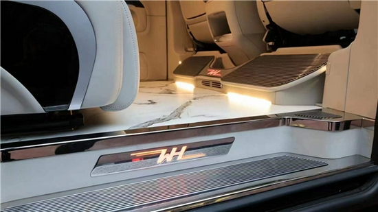 定制的理石纹理地板,拥有海洋一样的蓝色和魅力,经过麂皮绒包裹的顶棚细腻精致,电动开合大天窗以及可以满足不同需求的灯组,让车内的灯光氛围可以根据需求进行改变,无论是查阅资料,签署文件或者是阅读都可以拥有最适合的灯光相伴。18017751185