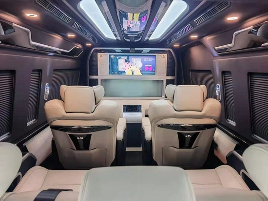 2021款丰田海狮配置:座椅调节,扶手,杯架,高级绒座椅,侧车窗,头顶部空调出风口,加装:4个航空座椅,桃木内饰,吸顶DVD 木地板座椅通风按摩。丰田海狮改装商务车为了提供给我们舒适的乘车环境,车内采用最舒适的音响设备和,丰田海狮改装商务车为我们在旅行中提供了优质音乐和旋律的需要,再加上车内增加了隔音设备,对回声的处理,丰田海狮改装商务车,更是为我们提供了最舒适的环境,宽敞的空间优雅的内饰,动听的音乐,这一切都是丰田海狮改装商务车的独特之处。