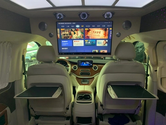 VS980奔驰第三排沙发,支持一键放下或者收起,随时为您的长途出行打造足够宽敞舒适的卧铺,简约时尚的氛围灯与豪华柚木地板交相辉映,是对精致移动生活的皮质追求奔驰V260L改装房车除了流行与公司、家庭,更成了了众多一线艺人的专业级保姆车,隐秘的车厢环境、舒适的乘坐氛围、可躺靠的沙发床、随意更衣的大空间、豪华的后舱配套、休闲的娱乐设备。