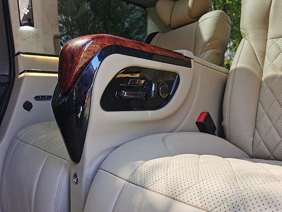 空间非常大,腿部可以在车内完全伸直,这个在SUV内表现成这样是很难得的,另外还铺了地板,地板的材料是缅甸柚木,缅甸柚木是最好的柚木之一,一般家用或者游艇上用,木板内带有充足的油分,所以可以一直保持光亮不暗沉,而且没有做过油漆,都是环保材料,是上好的木材,而且平时也很好打理,直接拿抹布或者拖把都能很好的打扫清洗。