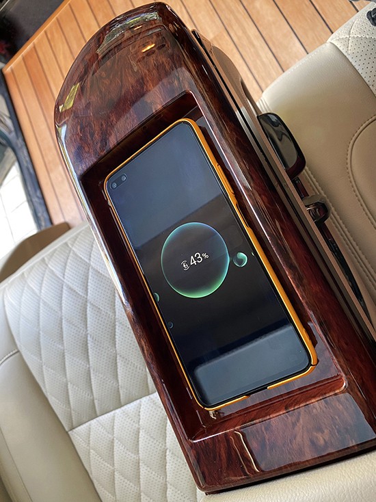 把手机放到扶手正上方位置可以充电噢,仅支持有无线充功能的手机。