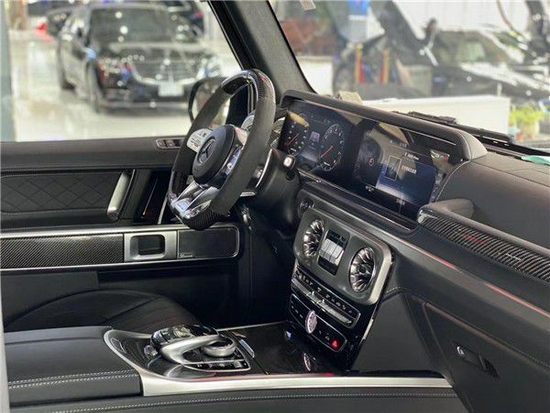不仅采用了全新的车身涂装,还搭配了红色的轮圈装饰,更加个性。新G63保留了新G500的整体设计,除配色差异外,新车还换装了全新造型的平底式AMG动方向盘,其两侧配以打孔皮质包裹,下部镀铬装饰的造型也与新G 500明显不同,看上去十分战斗。