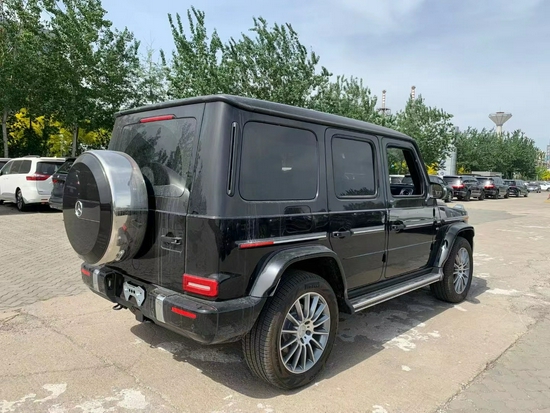 2021款奔驰G550是一部纯粹的全地形越野车,粗犷的外观,标志性的三肋镀铬格栅,大大的奔驰车标非常醒目;硬朗笔直的车身线条完全是硬派越野的风格,车头圆形前大灯设计很复古。平直的线条贯穿全身,后尾部线条也是有棱有角,后置式的备胎彰显出十足的越野味。