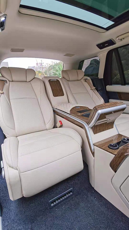 路虎揽胜加长版是在路虎揽胜的基础上做的加长版,腿部空间更大,而且其豪华程度可与超豪华商务车型相媲美,这么好的车一般人也不会再去升级内饰了,但如果再稍微往上提升从而变成超奢华模式是怎样的呢?下面给大家看看吧。