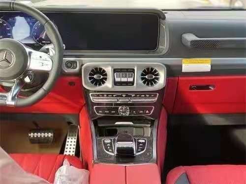 21款奔驰G63内饰设计:档次、质感和科技配置都明显提升全新奔驰G级 (配置|询价)的内饰相比老款有了明显的提升,采用了奔驰最新的双屏幕式设计,全液晶仪表盘和中控台屏幕都达到12.3英寸。同时内饰质感和工艺都有了很大的进步。