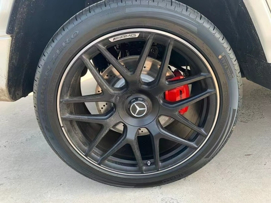 AMG G63标志性的特点还包括外扩的前后轮拱,它为更大更宽的轮毂提供了空间。标配的车侧行车踏板、前后保险杠的独特饰件和可选的designo漆面和哑光漆面为专属外观点睛。此外,AMG G 63还带有前翼的“V8 BITURBO”字样和后门的梅赛德斯-AMG G 63车型标记。除了20英寸和21英寸轮毂外,红色制动卡钳、开孔式制动盘和22英寸轮毂(仅限时光铭刻特别版和暗影之翼特别版)为G 63的外观设计增添了更多亮点。
