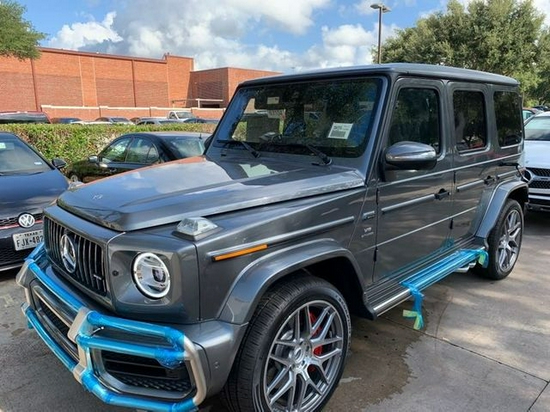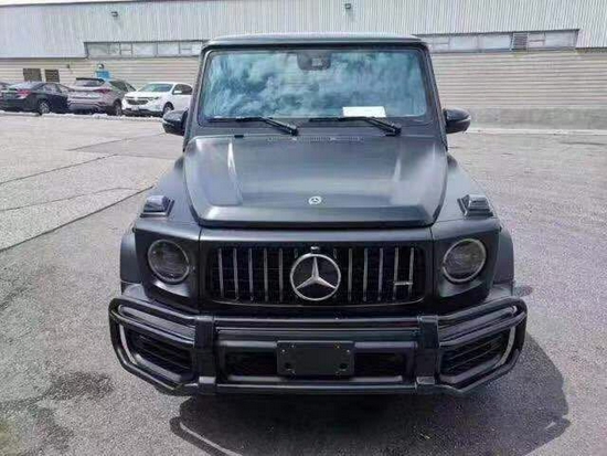 外观配置:G工厂定制石墨色金属漆,暗夜包(黑色车外后视镜、备胎,黑曜石漆保险杠、装饰条),AMG红色制动卡钳,,21寸AMG五幅轮毂,黑色轮毂,
