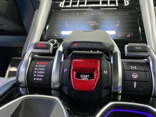 21款全新兰博基尼Tamburo驾驶动态选择器位于中控台,可对全车的动态系统进行控制,根据驾驶者偏好和路面状况切换驾驶动态:STRADA(道路)、SPORT(运动)和CORSA(赛道)模式,以及新增设的NEVE(雪地)模式。同时,可选装两种越野模式:TERRA(越野)和SABBIA(沙地)。 这是兰博基尼第一款搭载涡轮增压发动机的车型。
