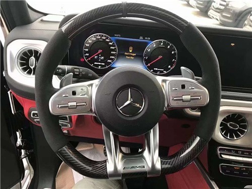 21款奔驰G63豪华精致的真皮包覆提供了足够的舒适性和支撑性,通风和加热功能让乘客免受高温和寒冷的煎熬。中控台多处均采用碳纤维材料覆盖,带彩色TFT显示屏的AMG仪表盘、AMG主菜单和单独的挡位显示器以及采用白色照明的AMG门槛。