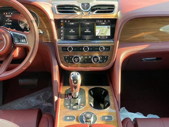 21款宾利添越内部设计沿袭了传统的豪华风格,全新的三辐式方向盘、大尺寸液晶显示屏和全新的电子换挡杆也为新车增提了一丝科技感。新车内饰整体采用真皮进行包裹,并辅以木纹饰板和部分镀铬装饰件进行搭配,视觉效果彰显奢华。