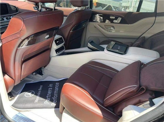 迈巴赫GLS600四座车型第二排独立座椅相比普通版GLS更加靠后,并且带有巨大的腿拖,其后排座椅最大倾斜角度大43.5度,后排腿部空间最大达1.34米。中央由冰箱、控制台、储物空间和手机无线充电台等进行贯穿。