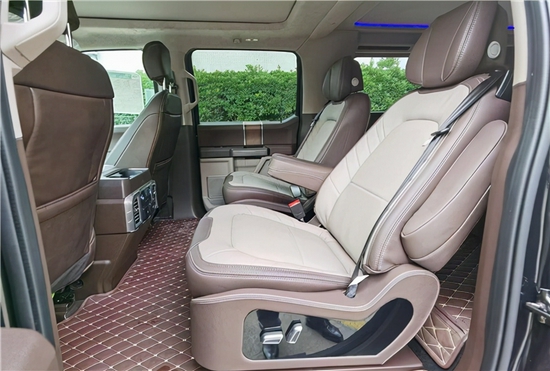 勇猛者采用带电冷热功用的可记忆式皮革座椅,头枕四向可调,搭配铝饰条和黑色钢琴烤漆内饰。二三排座椅电动调理,带有座椅加热功用。为了摆脱后排乘坐人员的单调感,我们在后面加装了氛围灯,使得愈加进步了层次。把后排座椅放平就是一个简易床,长途旅游时也不能忘了休息。