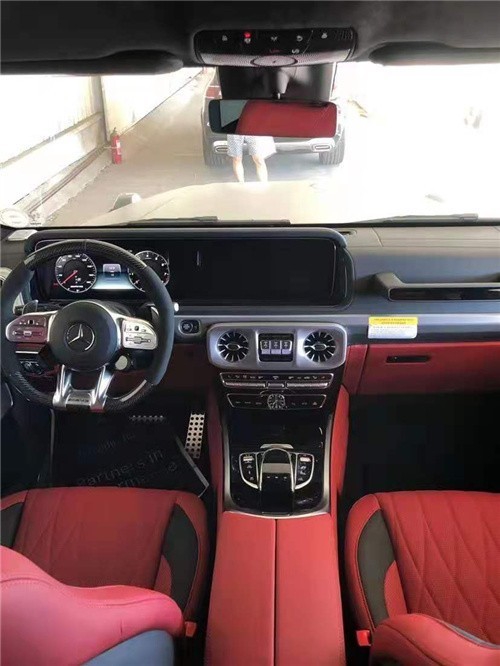 2021款全新G63内饰方面,新G63保留了新G500的整体设计,除配色差异外,新车还换装了全新造型的平底式运动方向盘,其两侧配以打孔皮质包裹,下部镀铬装饰的造型也与新G500明显不同,看上去十分战斗。此外,全液晶仪表盘+中控大屏的双12.3英寸屏幕设计在新车上也没有缺席,营造出了浓郁的科技感。