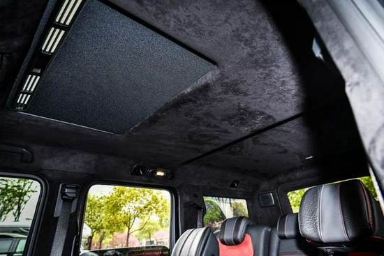 MANSORY AMG G63 P720内饰部分选用意大利Mastrotto小牛皮、Alcantara环保麂皮绒、碳纤维等顶级材料联袂打造出尊奢华贵而又不失动感激情的赛车级驾乘空间。巅峰四座格局配上RGB流星星空顶,让乘客切身感受到了大“G”不羁外表下的温存“内心”。