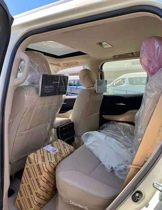 配置:20轮 7座,LED大灯+尾灯+日间行车灯,大灯清洗,电动折叠后视镜,拖钩,皮革座椅,前座椅主副电动,座椅通风,桃木方向盘,3区空调(第二排仅制冷),门上投地射灯,后备箱垫,12.3寸导航屏,智能卡,一键启动,启停,遥控启动,蠕行,环影,冰箱,防炫目后视镜,无线充电,定速巡航,电眼,转向辅助,胎压监测,电尾门,220V电源插座。