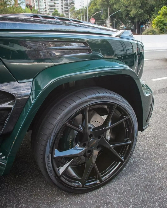 原本全身涂装半岛绿特殊漆的限量版AMG G63已是万中无一,但致力于:劳斯莱斯、宾利、法拉利、兰博基尼、布加迪等“全球顶流名车”外观、内饰、ECU调校升级的德国豪车定制业“领军者”MANSORY却以天马行空的想象力为AMG G63“编织”出一件华丽个性的空气动力学“战衣”:半岛绿车身与锻造花碳契合得浑然天成,一种前所未有的立体层次感和时尚跃动氛围映入眼帘,使人内心欢愉。而这头身披碳纤“铠甲”的四方“野兽”有了一个全新的名字——MANSORY G63 Gronos。
