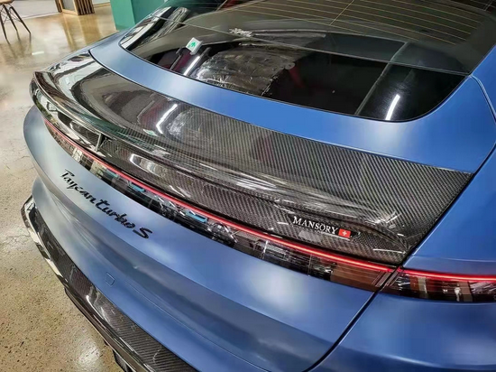 Taycan基于概念车MissionE所打造,名字意为“英姿飒爽的年轻骏马”,从它身上能充分领略到保时捷家族与生俱来的跑车基因和电动车特有的轻灵属性。对于Taycan这种跨时代的个性化“杰作”,同样以“个性”闻名,来自德国的“碳纤之王”——MANSORY迈莎锐又怎能不兴致勃勃萌生出新的“豪改”创意?日,针对一台宝蓝色Taycan,MANSORY迈莎锐再次展现了它日内瓦车展上天马行空的外观设计理念:以自家高工艺锻造碳打磨出全套空气动力学组件为车身“关键部位”做了包覆升级,“轻于铝、坚胜钢”的黑线碳纤维美观典雅质感十足,和Taycan原厂部件契合得浑然天成。