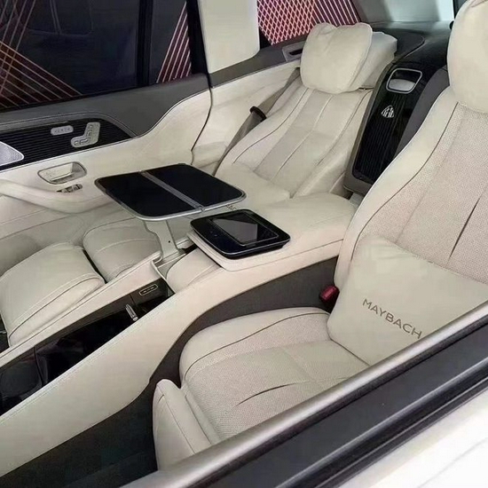 迈巴赫GLS采用了四座布局,其中第二排独立座椅相比普通版GLS更为靠后,同时还带有巨大的腿拖,而中央部分则是由控制台、储物空间和手机无线充电台等进行贯穿,并呈现出了类似于迈巴赫S级 (配置|询价)相同的头等舱设计。