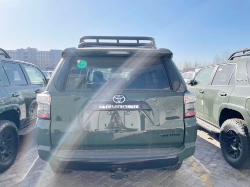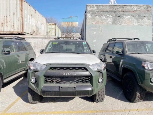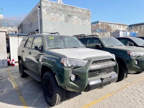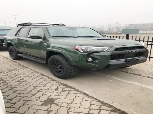 20款加版超霸TRD PRO 绿/黑: 2020款新增 无钥匙进入,一键启动 8寸中控大屏 Carplay智能互联 JBL高级音响 ACC自适应巡航 车道偏离预警 远程遥控启动 最新炫彩仪表 亮点配置: 10气囊 天窗 自动空调 碳纤维内饰面板 蠕行模式 多地形模式 坡道辅助 Fox避震 Trd底盘护板 Trd头枕刺绣 Trd黑色合金轮圈 筐式行李架 后差速锁 手动分时四驱(副挡杆) 标准配置:4.0L V6发动机 ,五速手自一体变速箱 ,五座,黑色真皮内饰,主副驾驶电动座椅,前排座椅加热,8寸中控屏幕,倒车影像,胎压检测,电动外加热后视镜,防眩目内后视镜,四门车窗一键升降,后排隐私玻璃,,二排座椅角度可调,电动可升降尾窗,底挂备胎,87L油箱。 刘佳:18622391170(同微信)