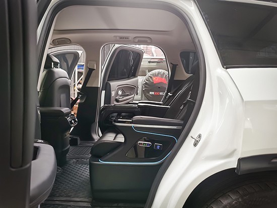 今天要说的是中排的改装案例,原车中排替换航空座椅,大大的增加了调节性功能以此来增强舒适性,座椅功能有通风、加热、按摩、手机无线充,另外带有六项调节功能分别是电动腿托、前后移动、靠背调节等。
