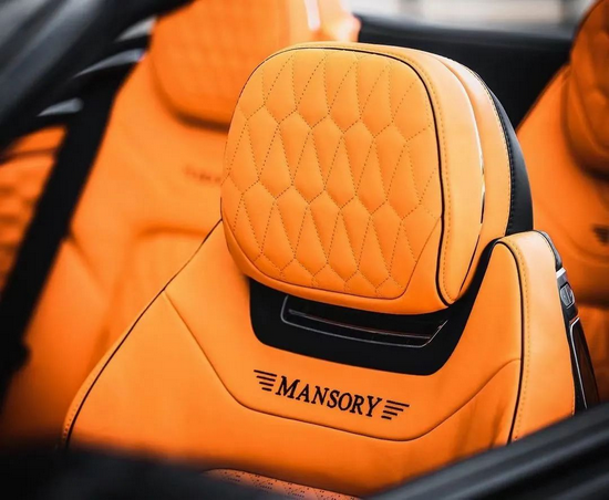 MANSORY迈莎锐的内饰设计展现出令人惊叹的艺术效果:Mastrotto小牛皮、Alcantara环保麂皮绒、密针细缕的精致缝线、无处不在的碳纤维等元素共同构建出一个奢雅尊贵而又不失时尚灵动的个性空间。就像椅面上MANSORYlogo的骄傲寄语:飞翼所至,尊贵永恒!