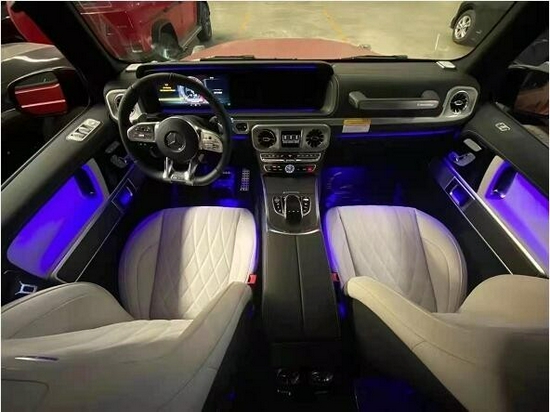 奔驰G63内饰设计:档次、质感和科技配置都明显提升全新奔驰G级 (配置|询价)的内饰相比老款有了明显的提升,采用了奔驰最新的双屏幕式设计,全液晶仪表盘和中控台屏幕都达到12.3英寸。同时内饰质感和工艺都有了很大的进步。