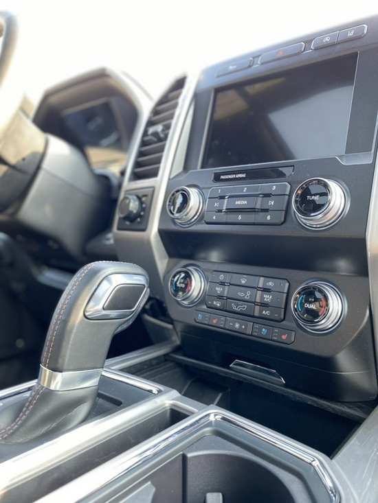 内饰采用独特的中控台和门饰板面漆和真皮包裹的方向盘。中控台部分辅以银色饰板装饰,六指针仪表盘的设计有些后工业时代的复古风格。采用带电冷热功能的可记忆式皮革座椅,头枕四向可调,搭配铝饰条和黑色钢琴烤漆内饰可电动升降的后窗带隔板和电热除霜功能。宽敞的空间可以让成员舒服的伸开双腿、展开双臂。福特F150猛禽的后门宽度明显比前门窄的多,但内部空间却依然满足需求,后门前端安装着安全带,可以保证车内乘员的安全。动力性能在公路上的优越待遇也展漏无疑,其他车辆都带着小小的恐惧,尽疯狂。
