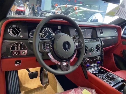 劳斯莱斯库里南内饰遵循了劳斯莱斯一贯的设计风格,造型经典复古但不失科技感,大量实木饰板的采用,提升了内饰的档次感。而大面积真皮包裹的设计,则成功的营造出奢华舒适的内饰氛围。仪表盘的设计较为古朴,内部指针清晰可见,外圈还配备有劳斯莱斯珠宝般的装饰环。方向盘沿用了经典的三辐式造型,但是整体设计更加小巧、厚实,并且内部包裹有可加热的柔软材质。