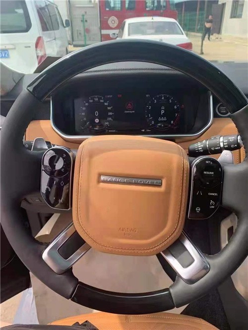 21款路虎揽胜行政创世加长版 内强大的功能并非体现在众多按键上,8英寸高分辨率液晶屏提供了出众的整合方案,至于音频输出,可以选择用29个扬声器或是原厂带的蓝牙耳机收听。控制台顶端以及方向盘以牛津皮革包裹,无论是视觉效果还是质感都无与伦比。中央显示屏双画面技术可使驾驶者和乘客同时观看不同的画面。