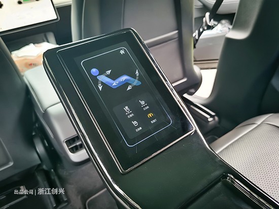 中间扶手有个液晶屏控制座椅的所有功能,另外扶手上带有手机无线充电功能,加上原车的两个,全车一共三个手机无线充。