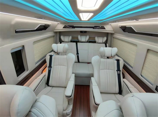 后排乘坐舱采用DVD智能24寸显示器、卡拉OK系统、折叠桌、内饰把手实木、空调出风口实木、全皮软包内饰顶棚、两侧航空灯、两侧窗帘、两侧装饰框及中门尾门、全新设计艺术办公桌(纸巾盒、杯架、抽屉)、220V电源、四张埃尔法样式航空座椅电动前后、电动靠背、脚托、加热、按摩、通风、模具塑料真皮扶手(镶嵌实木装饰)、艺术定制地板、两侧饰板软包、车内两侧饰板加装隔音隔热棉及止震垫等设备,无一不是让我们有更为舒适的乘坐感受。