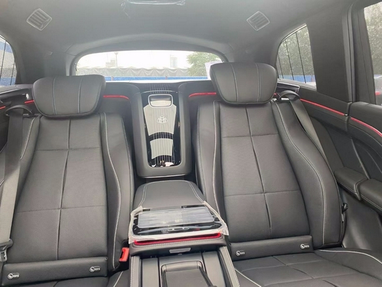 奔驰迈巴赫GLS600提供四座布局,四座车型第二排独立座椅相比普通版GLS450 (配置|询价)更加靠后,并且带有巨大的腿拖,其后排座椅最大倾斜角度大43.5度,后排腿部空间最大达1.34米。中央由冰箱、控制台、储物空间和手机无线充电台等进行贯穿,呈现出类似于迈巴赫S级 (配置|询价)一样的头等舱设计。