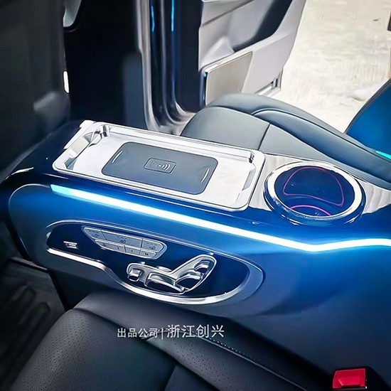 中间扶手箱带有无线充电功能和一个杯托,另外座椅的所有功能都是从中间扶手箱的两块面板进行控制,座椅无损安装,随时可以还原原车座椅。