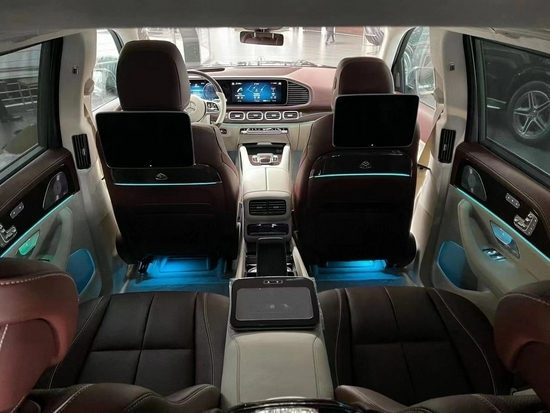 作为一款梅赛德斯-迈巴赫,内饰的舒适性与豪华性毋庸置疑。新车采用四座布局,第二排独立座椅相比普通版GLS更加靠后,并且带有巨大的腿拖,中央由控制台贯穿,呈现出类似于迈巴赫S级一样的头等舱设计。细节方面,我们能够看到新车座椅、车柱、车窗框架、车顶和仪表盘等位置采用Nappa真皮包裹,辅以梅赛德斯-迈巴赫独有的玫瑰金色缝线和滚边,并运用了多个迈巴赫专属标识。车内所有座椅均为多仿形座椅,均可多角度电动调节、并提供热石按摩、加热通风与记忆功能。后排乘客将拥有专属后排娱乐系统、靠枕、独立温区空调、后排触控平板等。