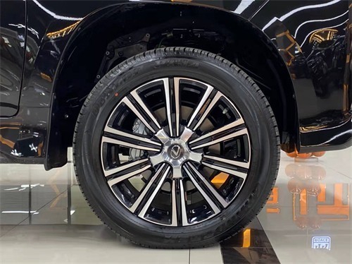 整个侧面给人的感觉非常长、而且还宽,可以说十分的庞大,非常的有气势,站在它旁边,人都显得渺小了。车顶配备行李架,如果需要拉行李的话也完全够用,搭配的是21寸轮毂,更贴近与公路性,也可以满足越野的需求。