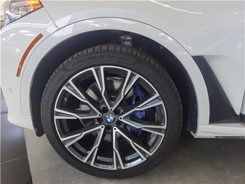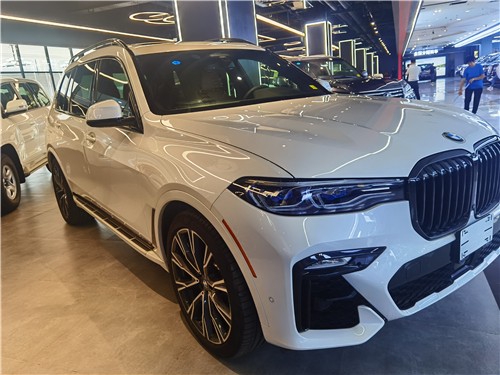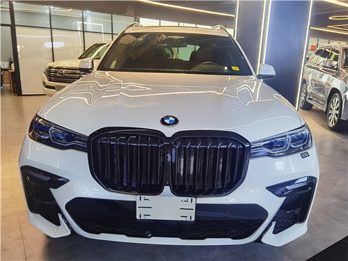 2021款宝马X7 (配置|询价)双肾式大尺寸前进气格栅,大灯的外部造型上面是更加的扁平化,内部的天使眼的大灯设计在设计上面是更加的抽象化和科技感,下方的保险杠以及整体的氛围营造也是在向着沉稳的方向过度的。
