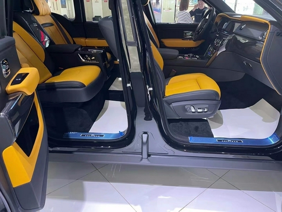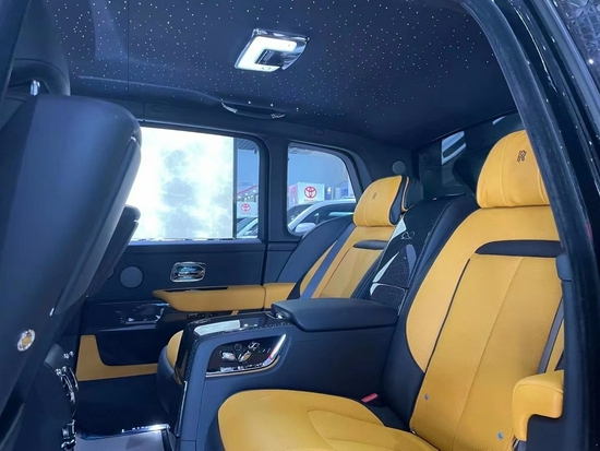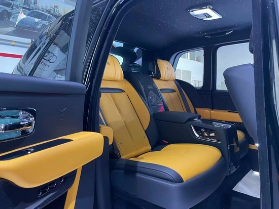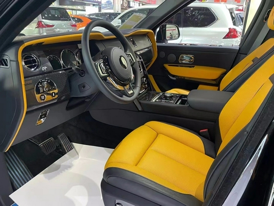 “Black Badge”库里南的车轮也不同于普通型号,外观为亮黑色喷漆,与红色卡钳正好互补,据说卡钳红色喷漆经过专门研发,能够承受快速刹车产生的高温。高科技碳纤维内面板采用高科技碳纤维内面板,“Black Badge”库里南采用碳纤维裸织工艺制作,并还原几何图形,为车主营造立体效果的氛围。对于每一块碳纤维,劳斯莱斯需要一个工匠上6层油漆,然后烘干72小时,最后由工匠打磨成镜面效果,整个过程需要21天时间。