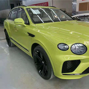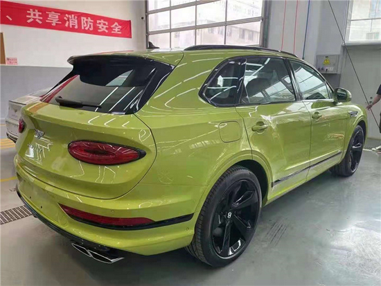 首先看一下添越的外观,荧光绿的车身涂装彰显独特魅力,让人感觉充满活力,面积增大不少的网状进气格栅,更显大气风范,两侧的LED大灯采用水晶切割工艺,即使不点亮的情况下也璀璨夺目,看起来更加精致奢华,前保险杠的轮廓也进行了重新设计,整个前脸的颜值提升了许多。侧面线条也十分流畅动感,看起来更加凌厉,车顶配有行李架,底部还配备了大尺寸的轮毂。